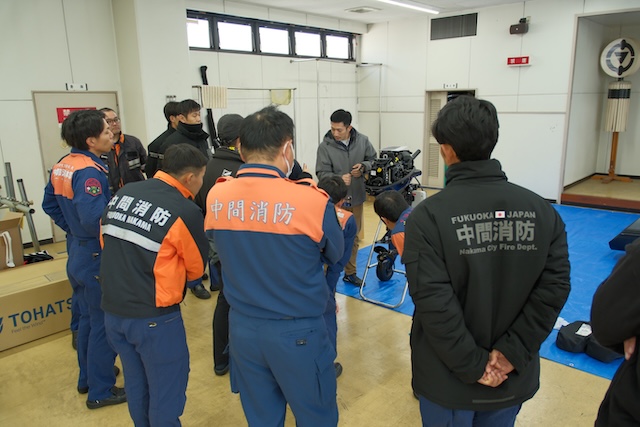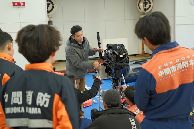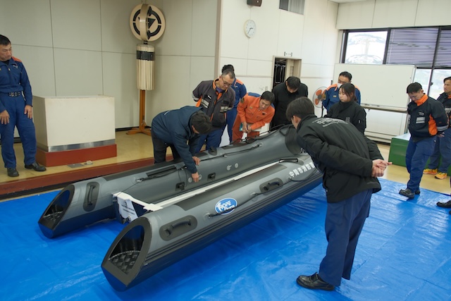 佐賀県大町町に操縦免許が不要なゴムボート、RSF-335DRを8艇納品しました。 消防団員150人による操縦訓練が行われました。